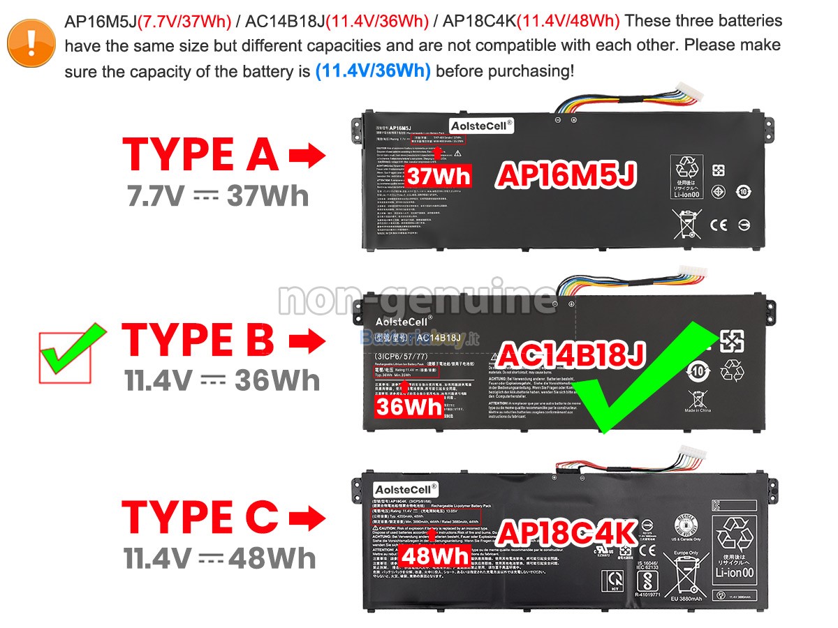 - La sostituzione della batteria Acer Aspire 3 A315-54-33PK è completamente nuova.