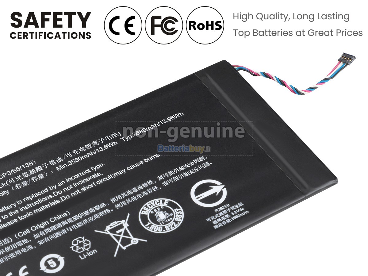 Le nostre batterie Acer KT.0010F.001 hanno superato le certificazioni CE, UL, ROHS e altre autorevoli certificazioni internazionali per garantire la conformità alle specifiche OEM, la capacità reale del 100% e rifiutare le falsità.