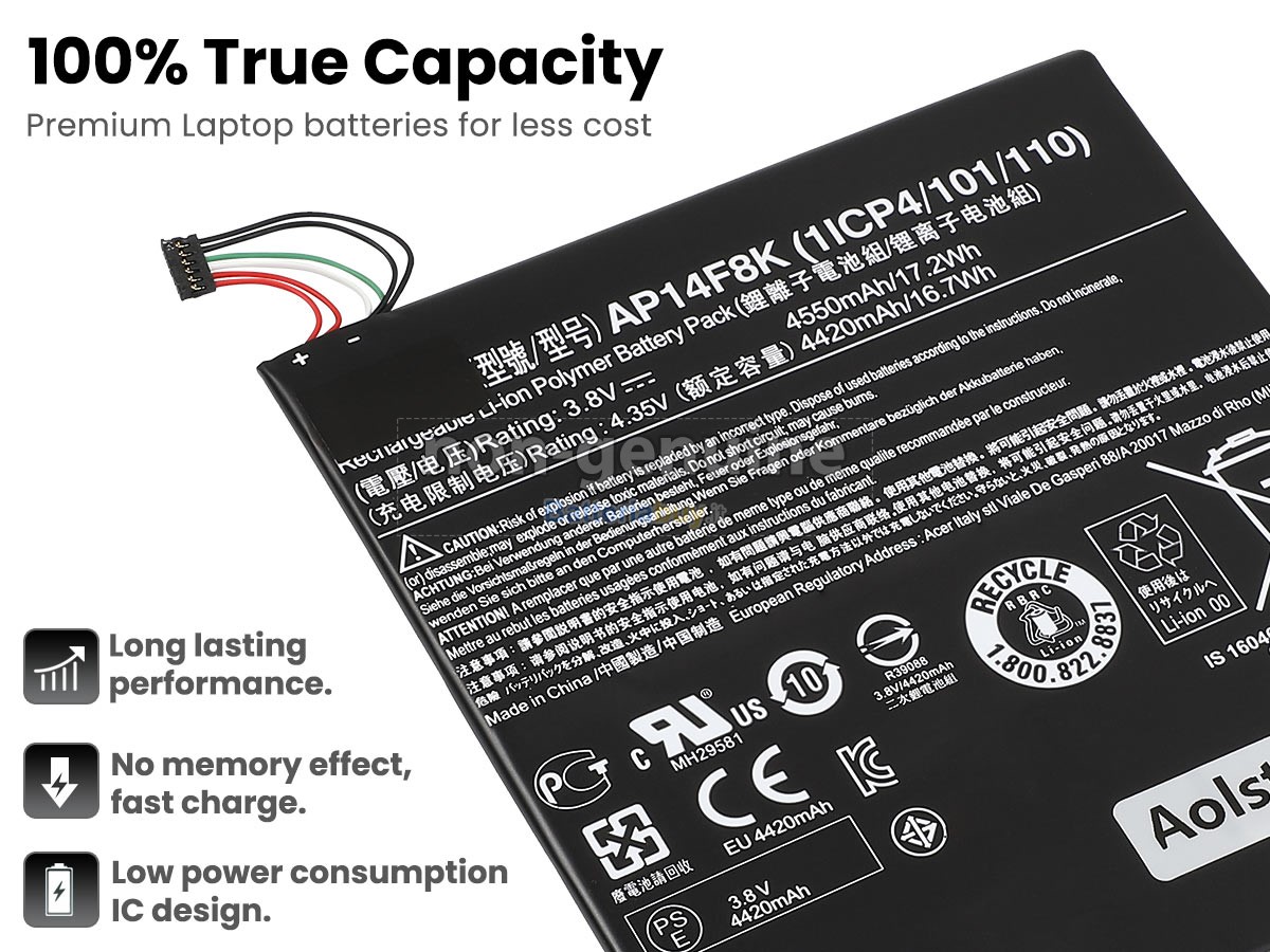 Questa nuova batteria sostitutiva Acer Predator 8 GT-810 ha celle di grado A+ integrate e un chip di controllo intelligente TI di alta qualità, che non solo ha buone prestazioni e una ricarica rapida, ma ha anche una lunga durata della batteria. Inoltre, la batteria Acer Predator 8 GT-810 è progettata secondo la batteria originale, utilizzando materiali di protezione ambientale in lega ABS + PC resistenti all'usura e alle alte temperature, che possono essere compatibili al 100% con il tuo Acer e adattarsi perfettamente.