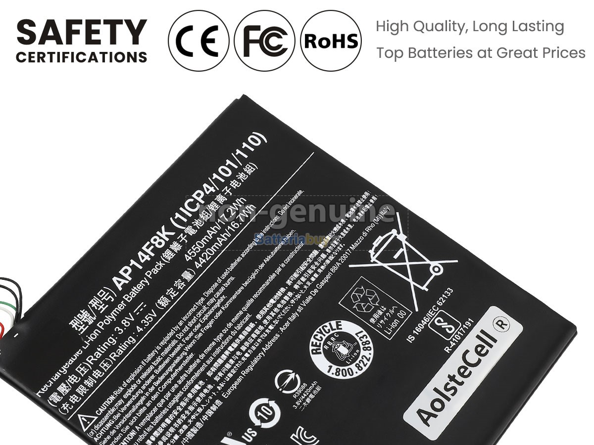 Le nostre batterie Acer Predator 8 GT-810 hanno superato le certificazioni CE, UL, ROHS e altre autorevoli certificazioni internazionali per garantire la conformità alle specifiche OEM, la capacità reale del 100% e rifiutare le falsità.