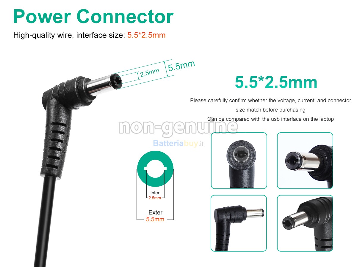 In generale, l'uso di un adattatore non originale non danneggerà il tuo Laptop. Tutti i nostri adattatori sono sottoposti a rigorosi controlli di qualità e test di sicurezza, garantendo che voltaggio e amperaggio siano stabili e conformi agli standard di sicurezza internazionali.