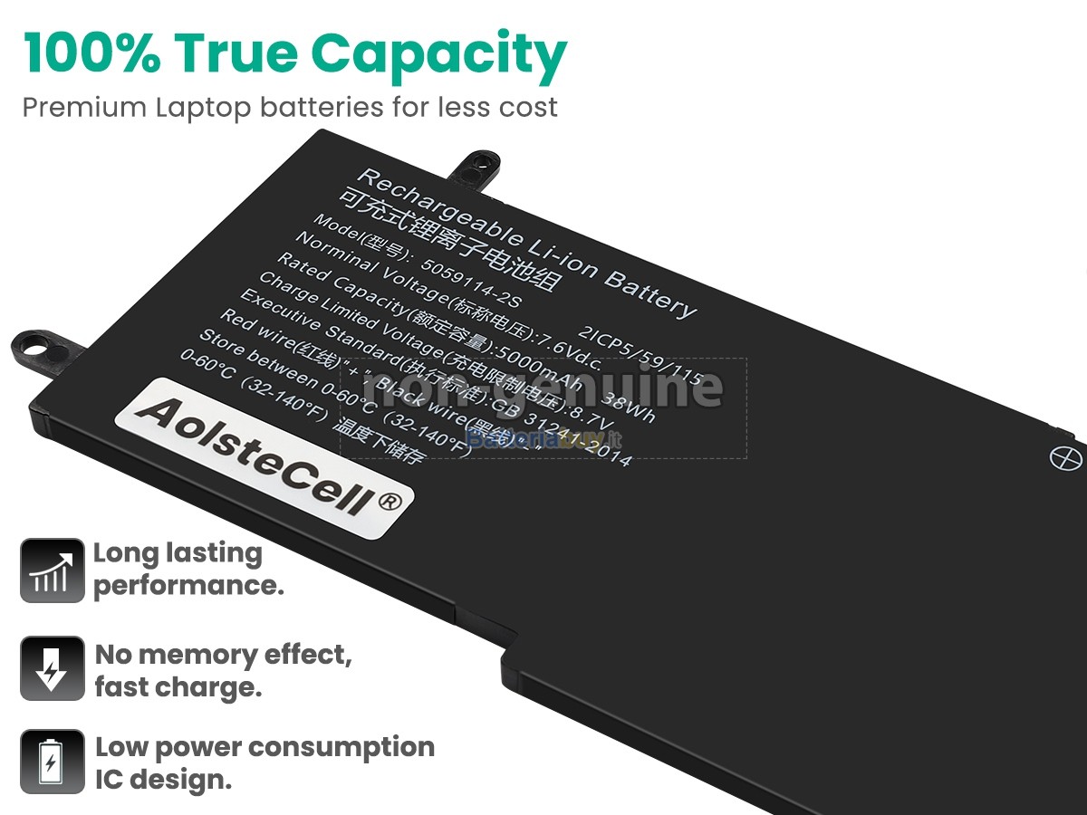 Questa nuova batteria sostitutiva AolsteCell 5059114-2S ha celle di grado A+ integrate e un chip di controllo intelligente TI di alta qualità, che non solo ha buone prestazioni e una ricarica rapida, ma ha anche una lunga durata della batteria. Inoltre, la batteria AolsteCell 5059114-2S è progettata secondo la batteria originale, utilizzando materiali di protezione ambientale in lega ABS + PC resistenti all'usura e alle alte temperature, che possono essere compatibili al 100% con il tuo AolsteCell e adattarsi perfettamente.