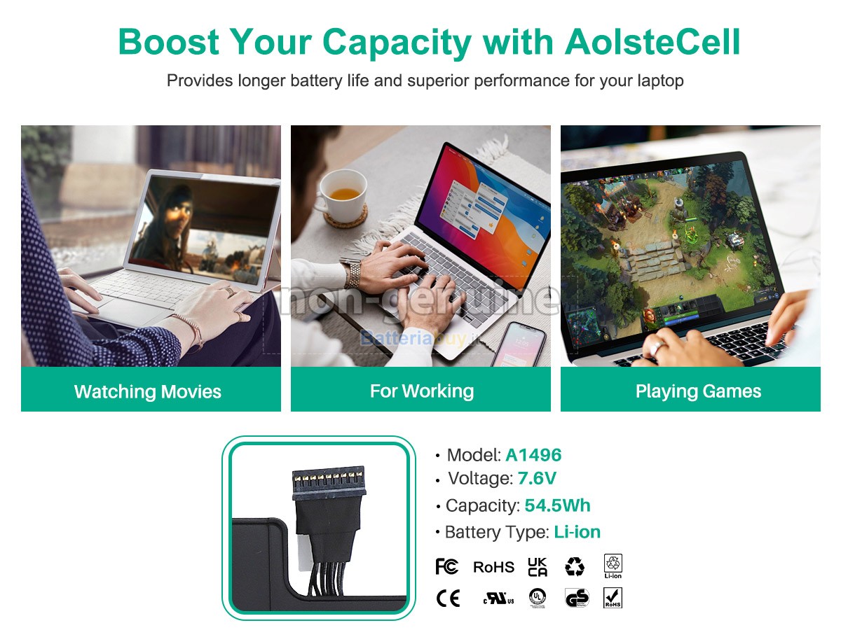 Le nostre batterie Apple MD761LL/B hanno superato le certificazioni CE, UL, ROHS e altre autorevoli certificazioni internazionali per garantire la conformità alle specifiche OEM, la capacità reale del 100% e rifiutare le falsità.