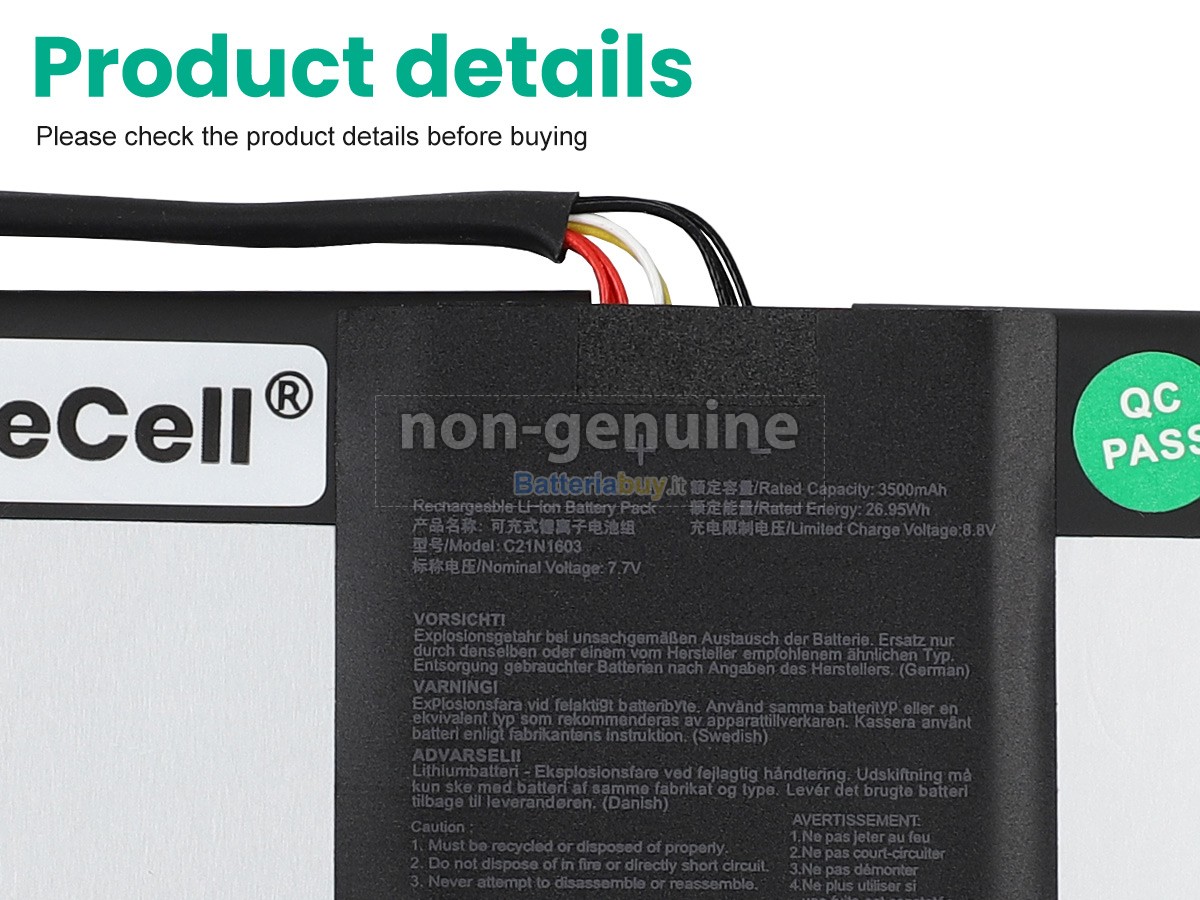 - La sostituzione della batteria Asus C21N1603 è completamente nuova.