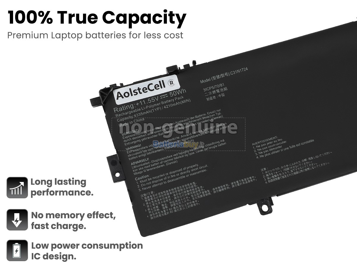 Questa nuova batteria sostitutiva Asus ZenBook 13 UX331FAL-EG003T ha celle di grado A+ integrate e un chip di controllo intelligente TI di alta qualità, che non solo ha buone prestazioni e una ricarica rapida, ma ha anche una lunga durata della batteria. Inoltre, la batteria Asus ZenBook 13 UX331FAL-EG003T è progettata secondo la batteria originale, utilizzando materiali di protezione ambientale in lega ABS + PC resistenti all'usura e alle alte temperature, che possono essere compatibili al 100% con il tuo Asus e adattarsi perfettamente.