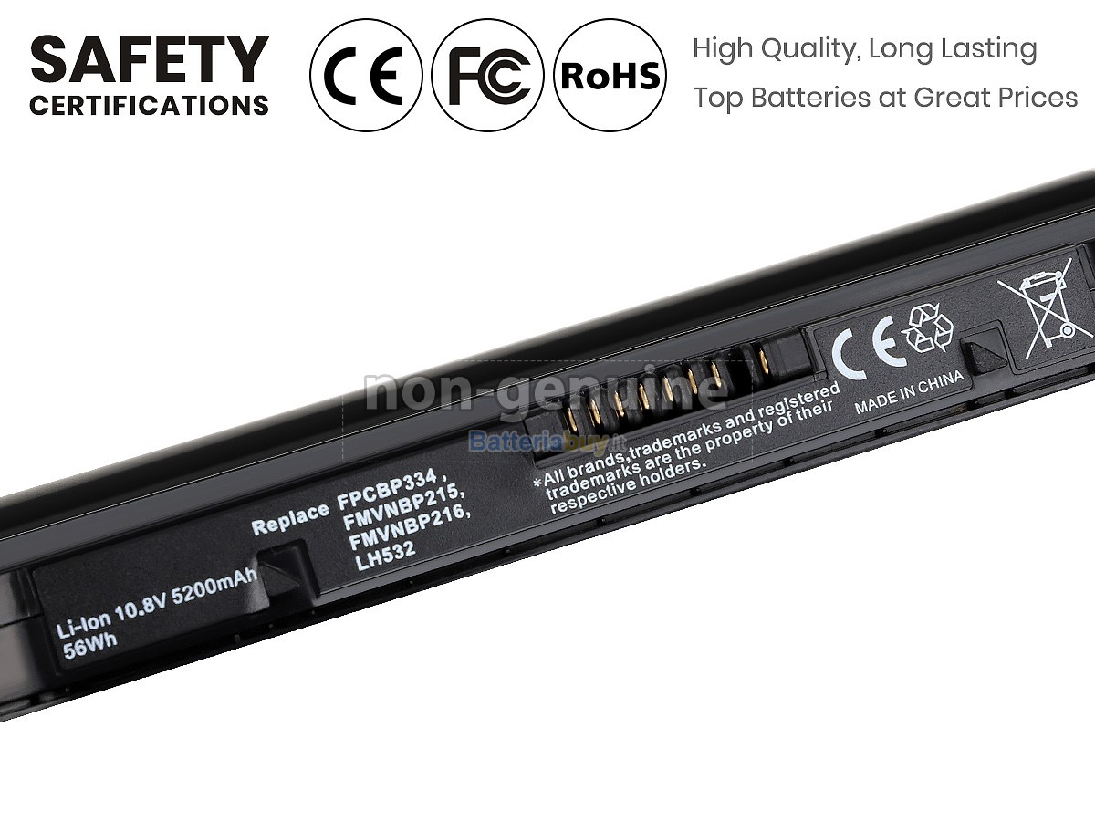 Le nostre batterie Fujitsu FMVNBP215 hanno superato le certificazioni CE, UL, ROHS e altre autorevoli certificazioni internazionali per garantire la conformità alle specifiche OEM, la capacità reale del 100% e rifiutare le falsità.