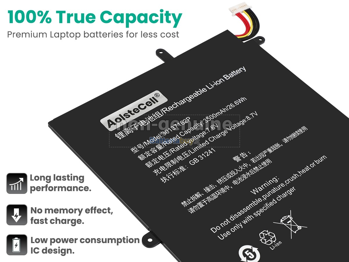 Le nostre batterie Teclast H-30137162P hanno superato le certificazioni CE, UL, ROHS e altre autorevoli certificazioni internazionali per garantire la conformità alle specifiche OEM, la capacità reale del 100% e rifiutare le falsità.