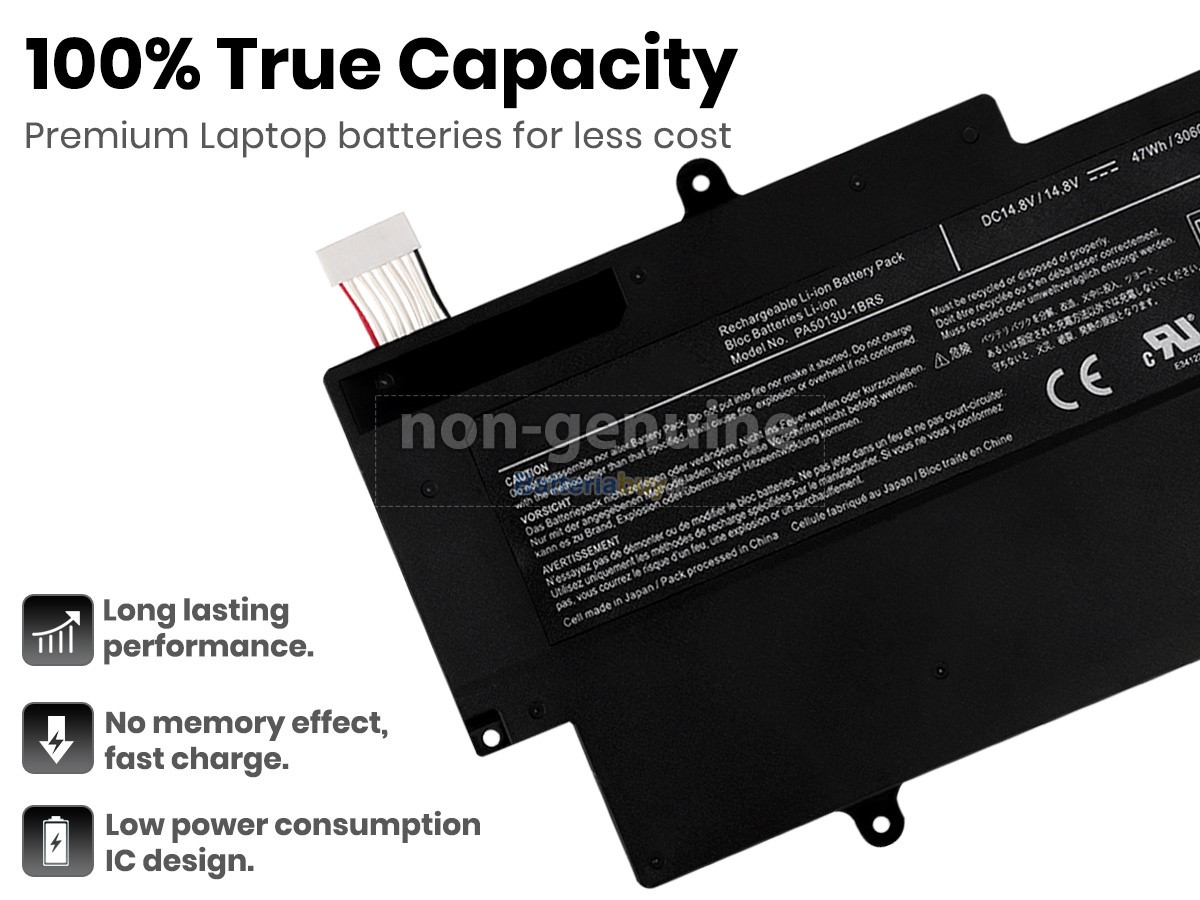 Questa nuova batteria sostitutiva Toshiba Portege Z935 ha celle di grado A+ integrate e un chip di controllo intelligente TI di alta qualità, che non solo ha buone prestazioni e una ricarica rapida, ma ha anche una lunga durata della batteria. Inoltre, la batteria Toshiba Portege Z935 è progettata secondo la batteria originale, utilizzando materiali di protezione ambientale in lega ABS + PC resistenti all'usura e alle alte temperature, che possono essere compatibili al 100% con il tuo Toshiba e adattarsi perfettamente.
